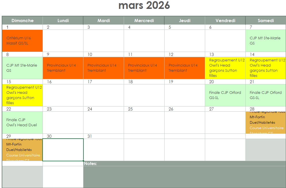 *La date de début de la saison régulière est tributaire de l’ouverture de la station.