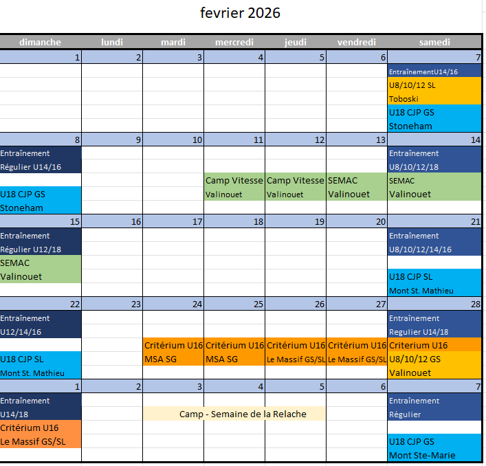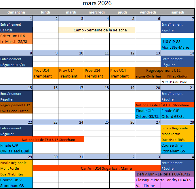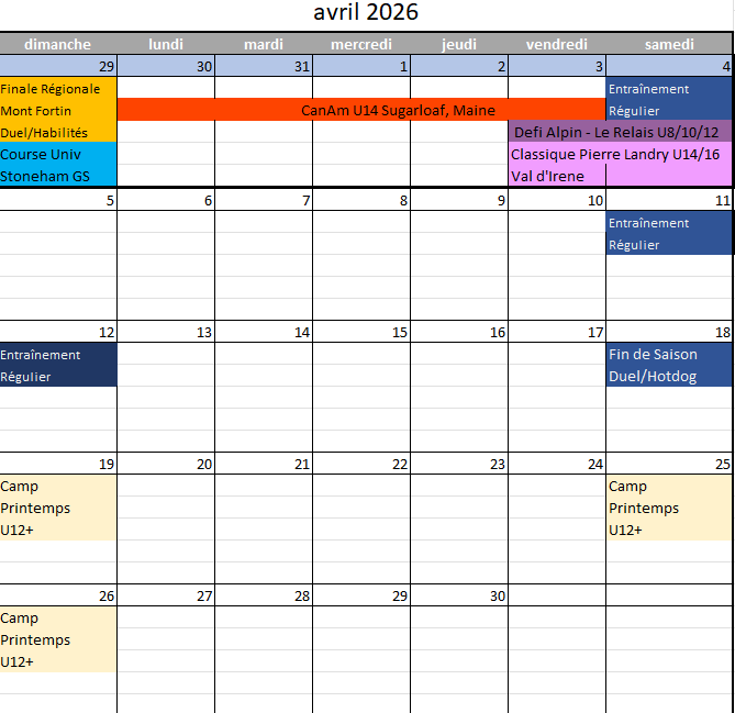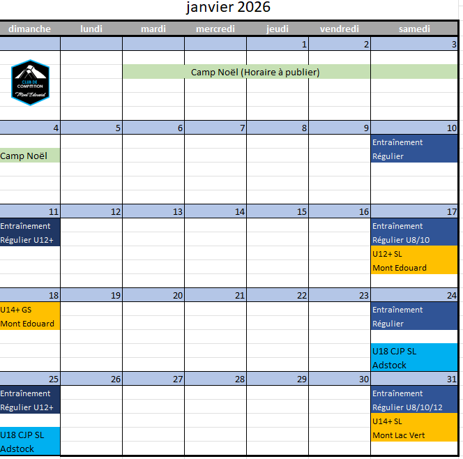 *La date de début de la saison régulière est tributaire de l’ouverture de la station.